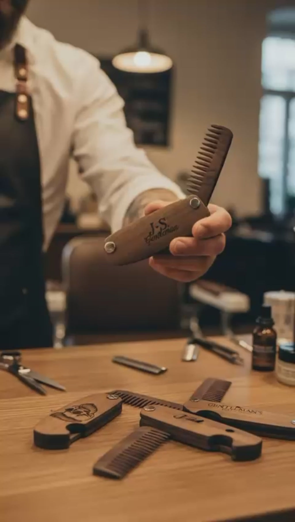 Dieser handgefertigte Bartkamm aus Naturholz ist faltbar, antistatisch und perfekt für unterwegs. Mit Schutzetui geliefert und auf Wunsch personalisiert – mit Initialen, Namen, Widmung oder kleinem Logo (Gravurfläche angepasst an die Größe des Kamms).