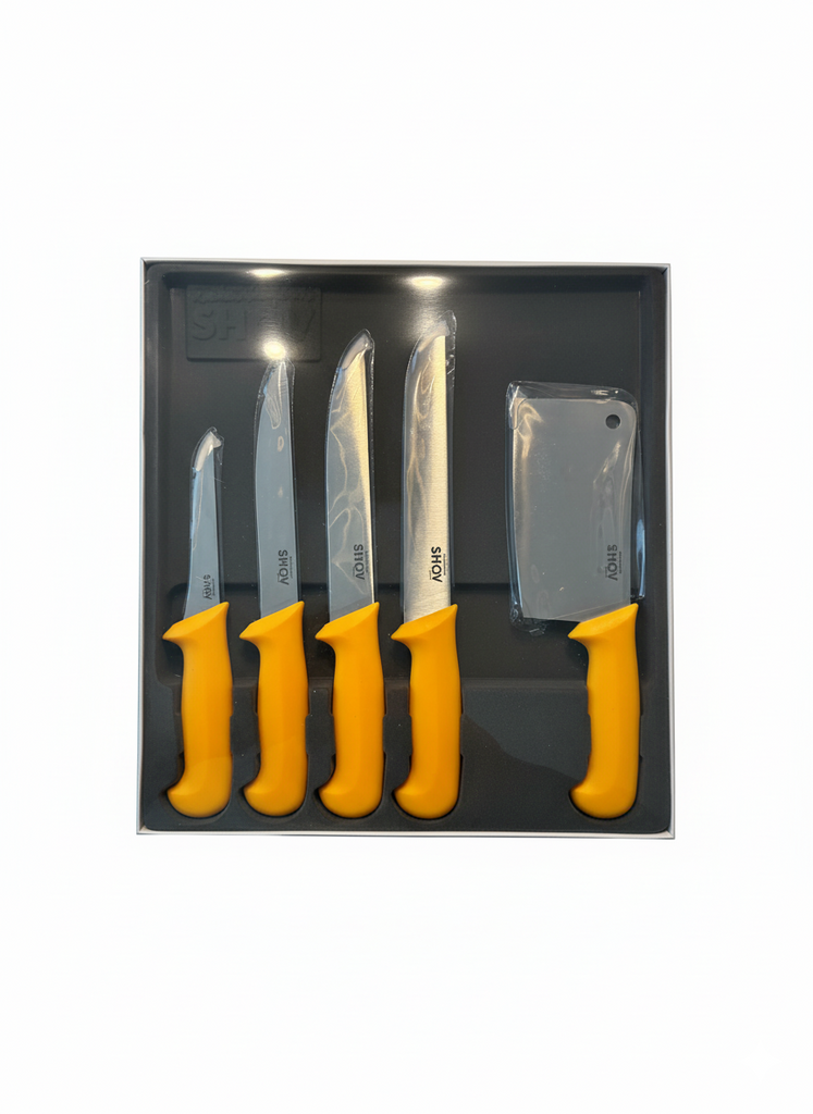 Küchenmesser Set, Kochmesser Set, SHOV Messer, Edelstahl Küchenmesser, Profi Küchenmesser, Messer-Set 5-teilig, Hackmesser, Fleischmesser, Ausbeinmesser, Kochmesser Profi, Küchenmesser Edelstahl.