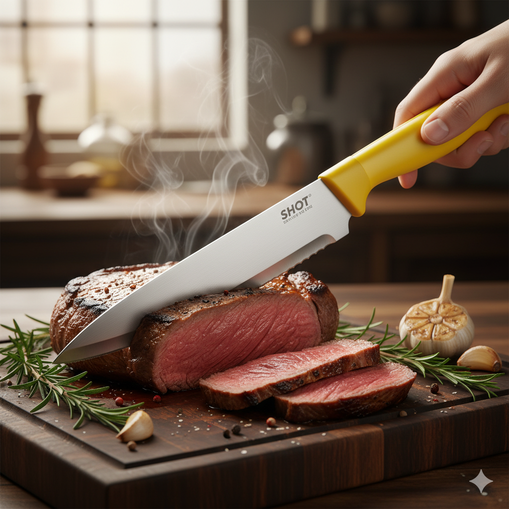 Jedes SHOV Kochmesser wird präzise gefertigt, um eine dauerhaft hohe Schneidleistung zu bieten. Die Klingen gleiten sauber durch Fleisch, Fisch und Gemüse und ermöglichen feine Schnitte ebenso wie kraftvolle Schneidarbeiten. Dieses Küchenmesser-Set aus Edelstahl vereint Schärfe, Kontrolle und Langlebigkeit und ist damit eine ausgezeichnete Wahl für jede moderne Küche.